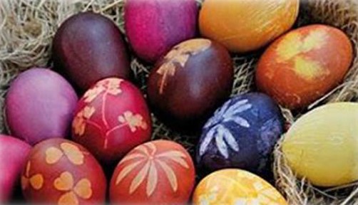 des Osterhasen wieder fleißig. Wir färben zusammen Ostereier und